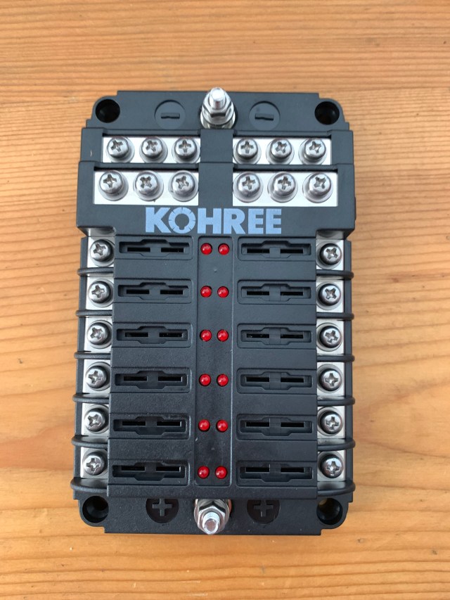 - Fuse relay (DC distribution board) – connects directly to the battery, then to our components/devices via fuses