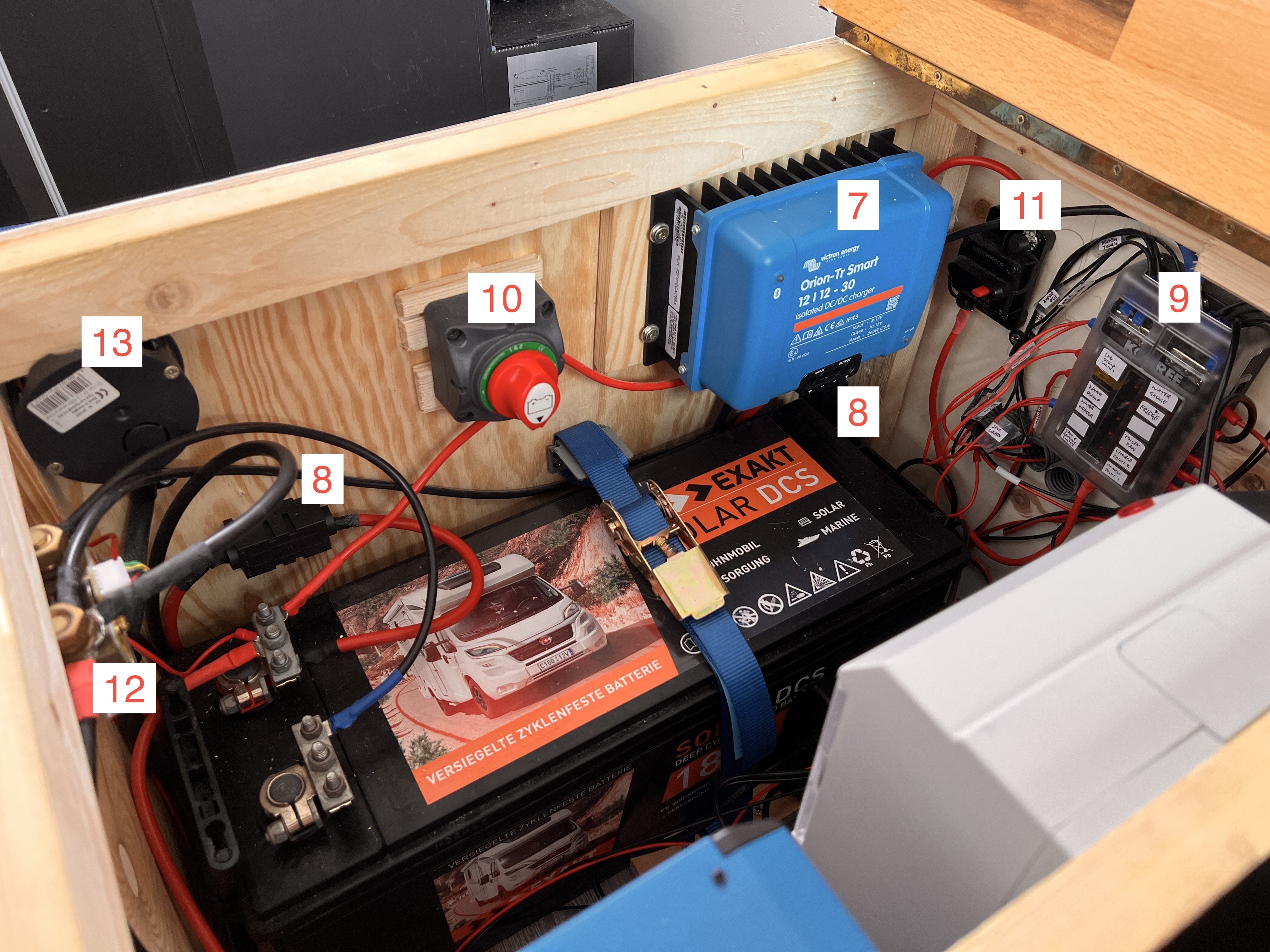 - In-line fuses between the van’s alternator and DC leisure battery charger